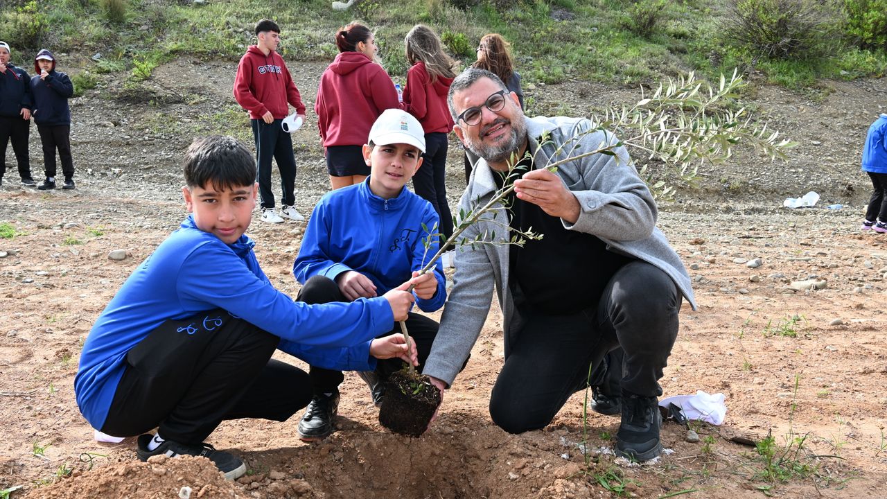 Sulama altyapısı belediye tarafından önceden hazırlanan alana toplam 120 zeytin fidanı dikildi.