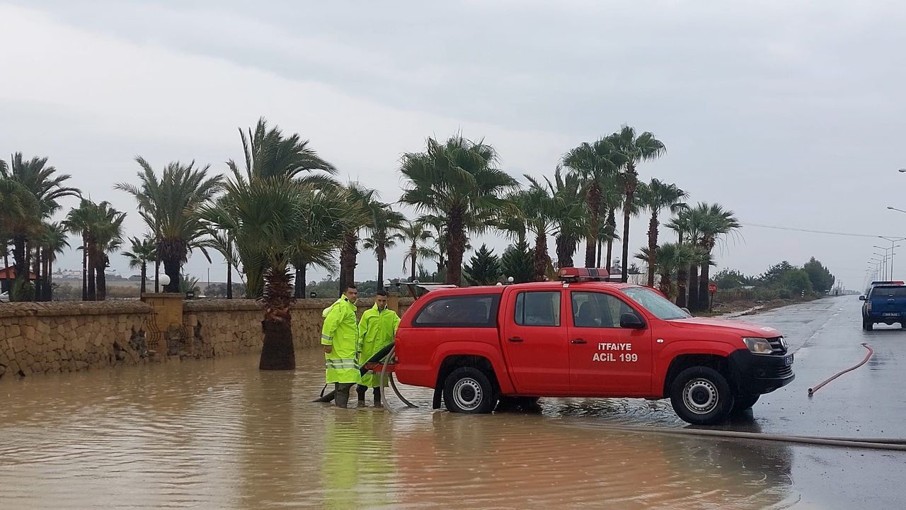 Girne İtfaiye Şubesi ise; 3 araç ve 10 personel ile toplam 7 noktada sel baskınlarına müdahalede etti.