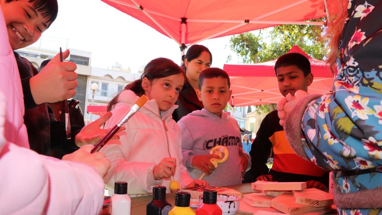 Etkinlik çerçevesinde kurulan "Yeniden Yaşam Atölyeleri"nde KKTC'li çocuklar, atık malzemeleri anahtarlık, biblo ve tabloya dönüştürdü.