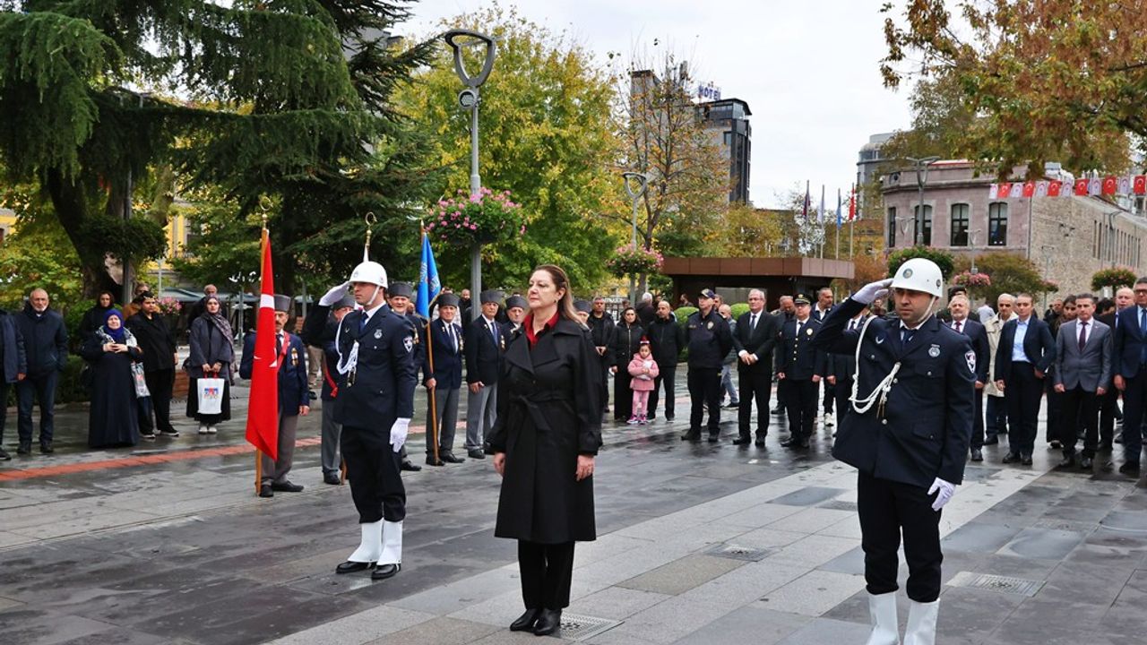 Ortahisar ilçesindeki 15 Temmuz Şehitleri ve Hürriyet Parkı'nda organize edilen törende, KKTC Trabzon Başkonsolosu Fatma Demirel ve Türkiye Muharip Gaziler Derneği Trabzon Şube Başkanı Seyyah Sağıroğlu, Atatürk Anıtı'na çelenk sundu.