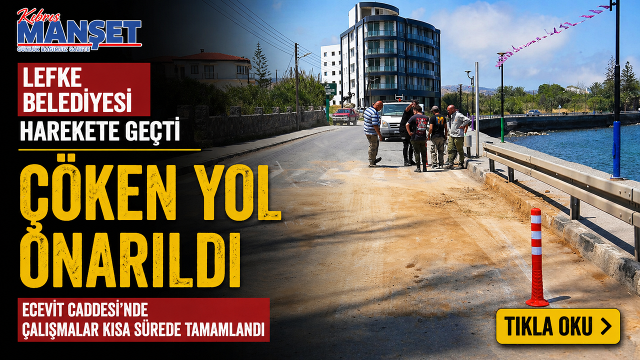 Lefke Belediyesi, Ecevit Caddesi’nde meydana gelen yol çökmesine müdahele ettiğini ve onarım işlemlerini tamamladığını duyurdu.