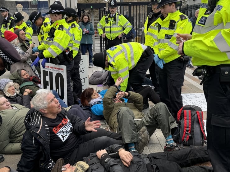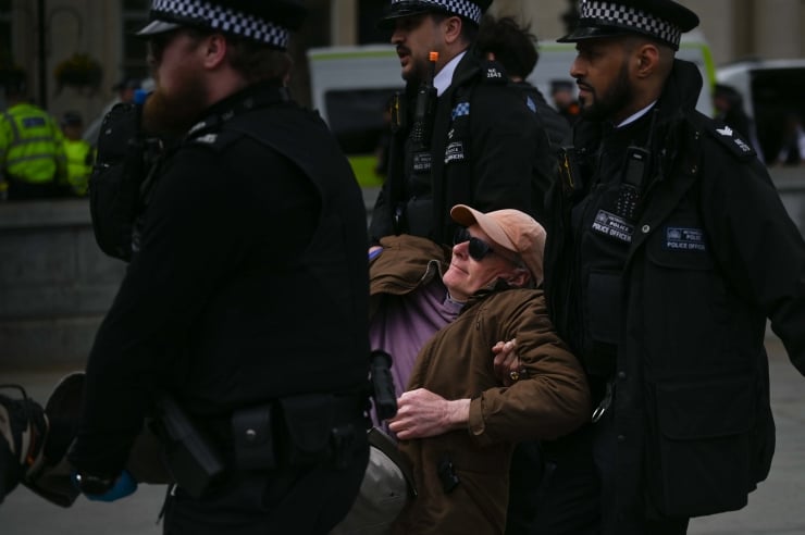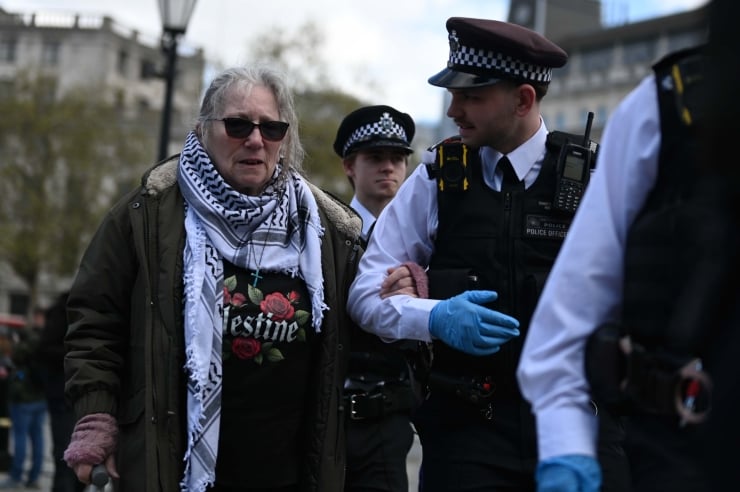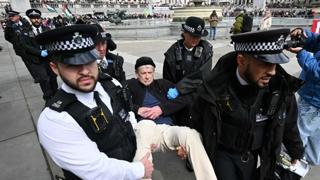 Daha önce Palestine Action’a destek eylemlerinin yasa dışı olduğunu ve destek verenlerin gözaltına alınacağını açıklayan Londra Metropolitan Polisi, çoğunluğu yaşlı İngilizlerden oluşan eylemcilere müdahale etti.