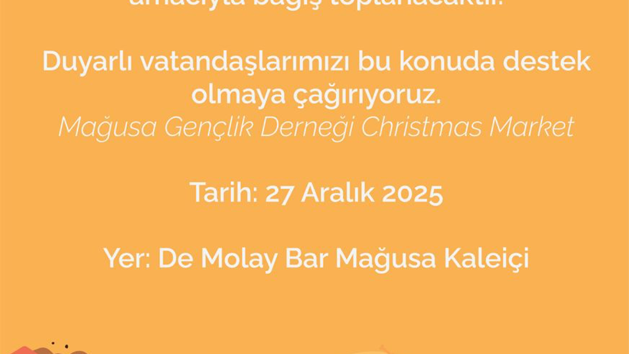 Mağusa Gençlik Birliği, sokak hayvanları yararına, cumartesi günü Christmas Market etkinliği düzenleyecek.