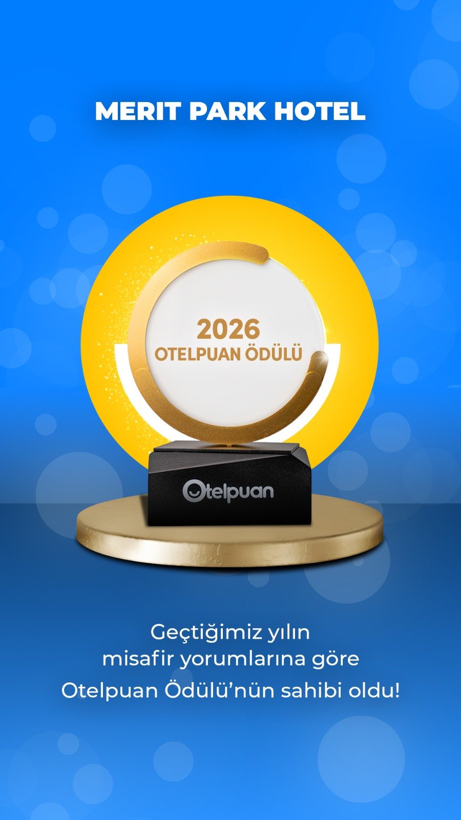 Otelpuan.com tarafından gerçekleştirilen değerlendirme sonucunda, 23.000 otel arasından seçilerek Türkiye’nin en beğenilen 100 oteli arasında yer alan Merit Park, bu prestijli ödüle layık görüldü.