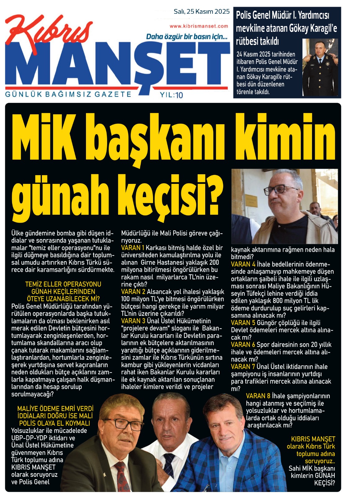 Yolsuzluklar ile mücadelede UBP-DP-YDP iktidarı ve Ünal Üstel Hükümetine güvenmeyen Kıbrıs Türk toplumu adına KIBRIS MANŞET olarak soruyoruz ve Polis Genel Müdürlüğü ile Mali Polisi göreve çağırıyoruz.