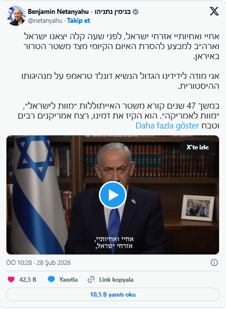 İsrail başbakanı, saldırıya ilişkin X’ten şu açıklamayı yaptı: