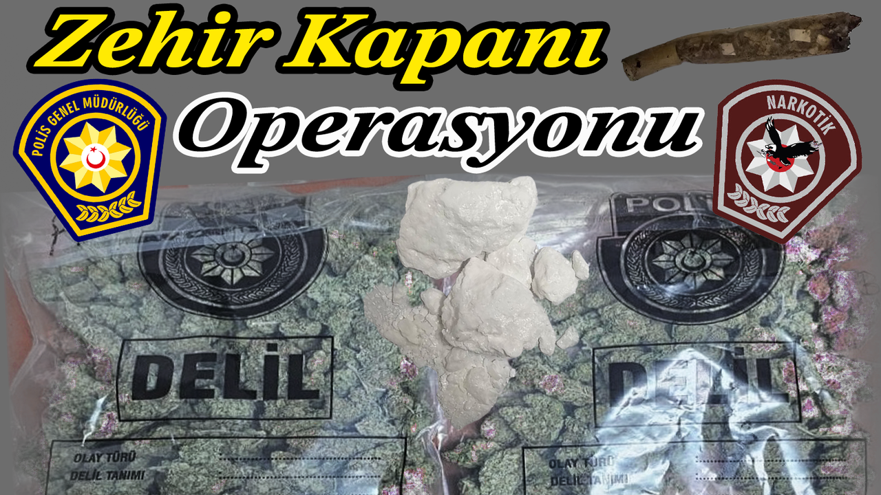 Operasyon kapsamında; toplam 719 gram ağırlığında hintkeneviri türü, 28 gram ağırlığında kokain türü ile 8 gram ağırlığında metamfetamin türü uyuşturucu olduğuna inanılan madde, içerisinde tütünle karışık sentetik cannabinoid türü uyuşturucu olduğuna inanılan bir ucu yanık sarma sigara, üzerlerinde sentetik cannabinoid türü uyuşturucu bulunan 2 kağıt parçası, 8 psilosibin mantarı (sihirli mantar), üzerlerinde uyuşturucu madde kalıntısı olan 2 hassas terazi, öğütücü, makas, cam pipo bulundu.
