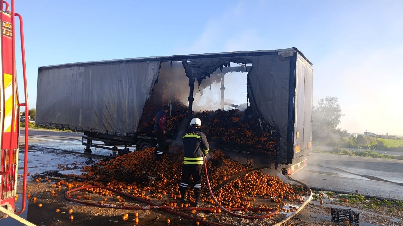 Polis açıklamasına göre saat 16.00 sıralarında, İnönü - Dörtyol kavşakları arasında Gazimağusa istikametine doğru giden tırdaki, itfaiye ekipleri tarafından söndürülen yangında tır dorsesi, lastikleri ve tırda yüklü portakallar zarar gördü.