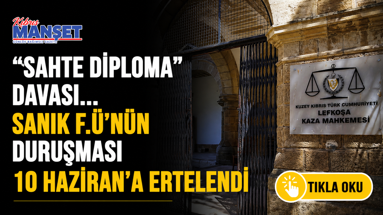 Kıbrıs Sağlık ve Toplum Bilimleri Üniversitesi’nde (KSTÜ) başlatılan “sahte diploma” soruşturması kapsamında tutuksuz yargılanan sanık F.Ü, bugün yeniden Lefkoşa Ağır Ceza Mahkemesi’ne çıkarıldı. F.Ü.’nün davası itham için, 10 Haziran Çarşamba gününe ertelendi.