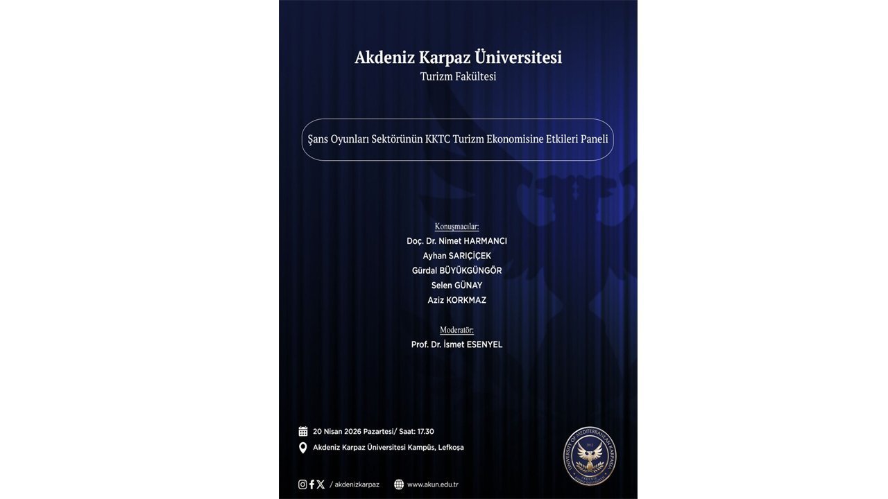 Akdeniz Karpaz Üniversitesi’nda 20 Haziran (yarın) düzenlenecek panelle şans oyunları sektörünün turizm ve ekonomideki yeri tartışılacak.