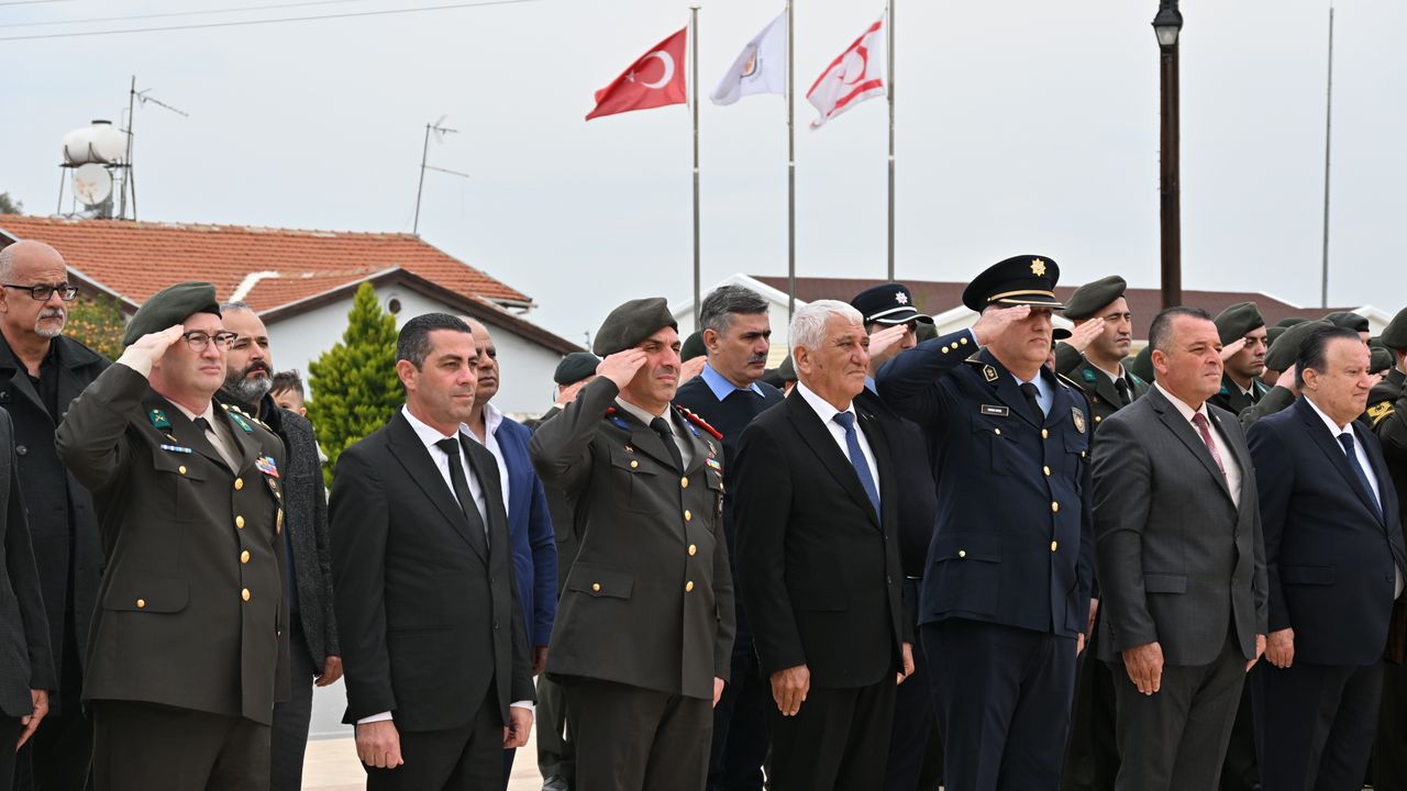 Belediye açıklamasına göre, protokol sırasına göre anıta çelenklerin konulmasıyla başlayan törende, 1 dakikalık saygı duruşu, saygı atışının ardından İstiklal Marşı eşliğinde bayraklar göndere çekildi.