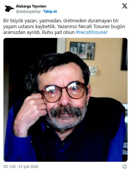 2024’te Erdal Öz Edebiyat Ödülü’ne layık görülen yazarın öldüğünü kitaplarını yayınlayan Alakarga Yayınları ve Günışığı Kitaplığı duyurdu.